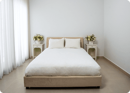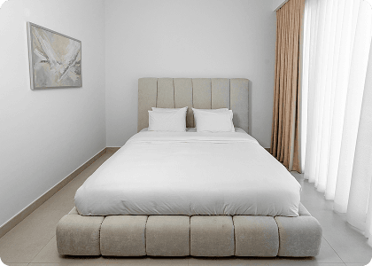 You choose a package through our app based on your bed size, how often you want fresh linens (weekly, bi-weekly, or monthly), and any extras like towels or extra pillowcases. We deliver your clean set and pick up the used ones. For 30 AED, we’ll even make the bed for you.